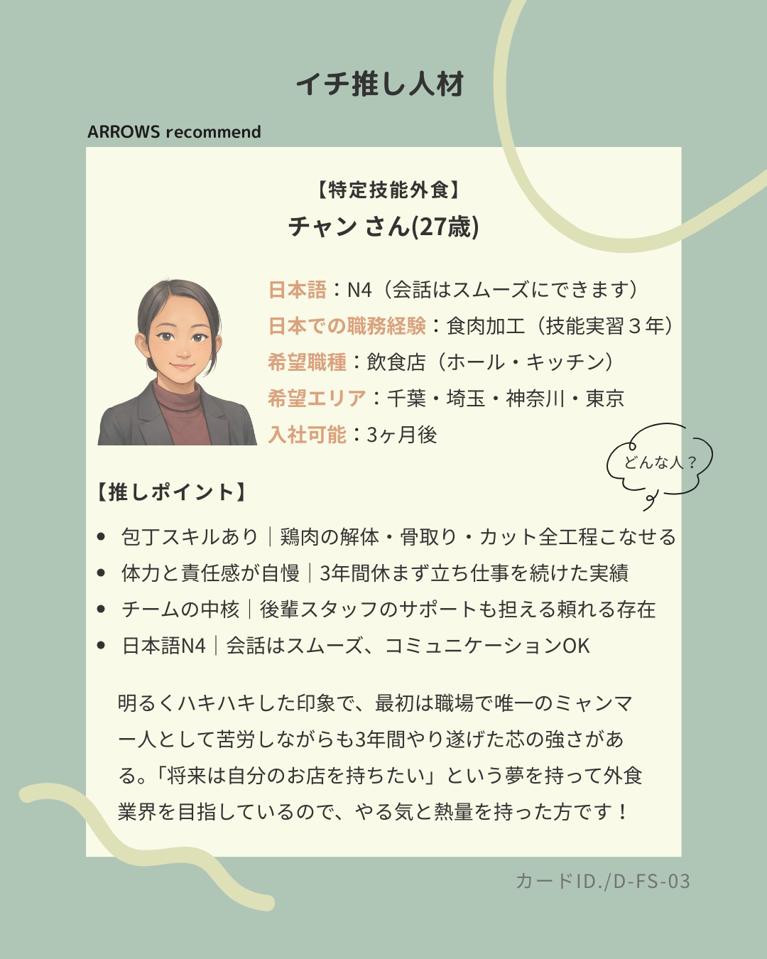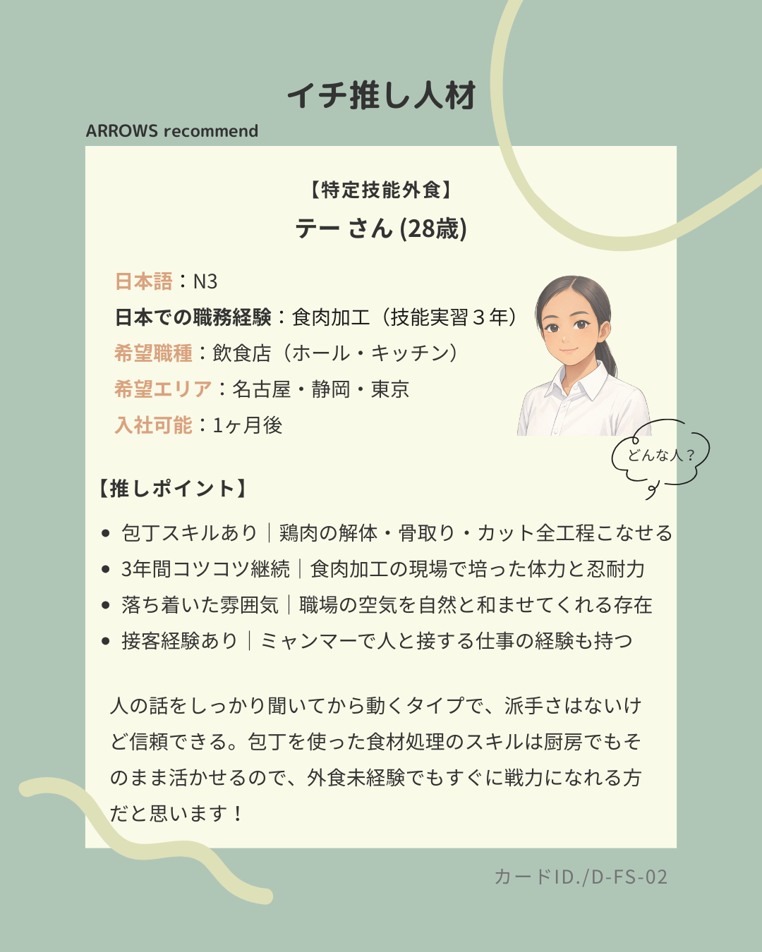 ARROWSが面談を通じて”この人はいい!”と感じた人材を、イチ推し人材としてご紹介しています。